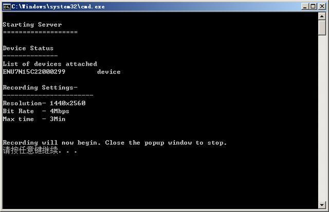 这种方法用起来非常简单,不过也有不足之处:它最多只能录制 3 分钟的视频,也无法同时录制音频。双击 AndroidRecordScreen_advanced 这个文件,还可以调整录屏的分辨率、码率、长度(最长是 3 分钟)