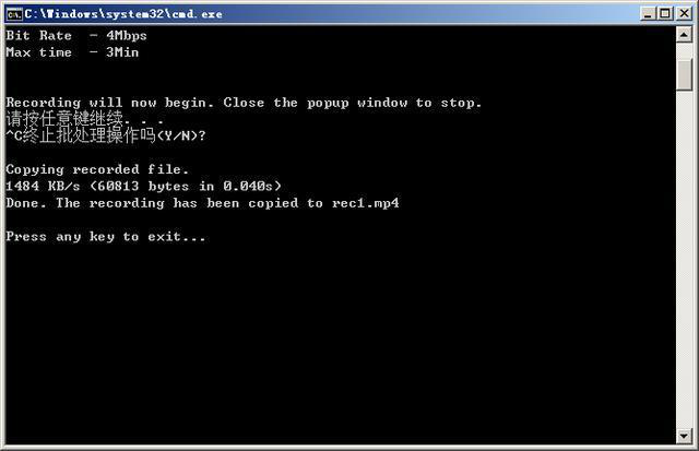 5、关闭第二个窗口,录屏会自动停止,视频会自动保存在小工具所在的文件夹,并发送到手机的存储空间,所以你也可以在手机上观看录屏。这是停止录屏后,第一个窗口显示的信息: