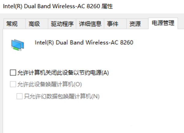 6、双击无线网卡弹出属性对话框,切换到“电源管理”中,取消勾选“允许计算机及关闭此设备以节约电源”。