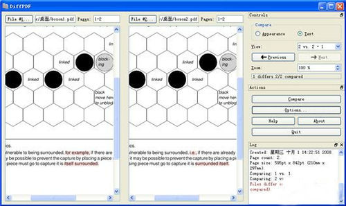 DiffPDF是一款基于Poppler-Qt的开源的PDF文件比较工具,就好比WIKI上面的修改对比是一样的,比较两个PDF文档的不同,然后高亮显示。DiffPDF可以帮助用户轻松的对两个pdf文件进行字数、页数、布局等内容的比较,从而完成繁杂的比较任务。