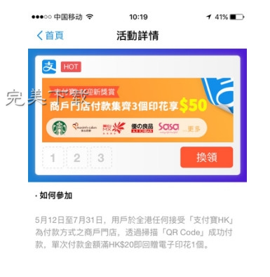 香港人很喜欢集印花,这功能对支付宝HK来说当然必不可少,这也成为支付宝HK的运营利器,支付就自动集印花,再也不用担心印花丢失。而且,兑换印花也是一秒到账,再也不用走路、不用排队。