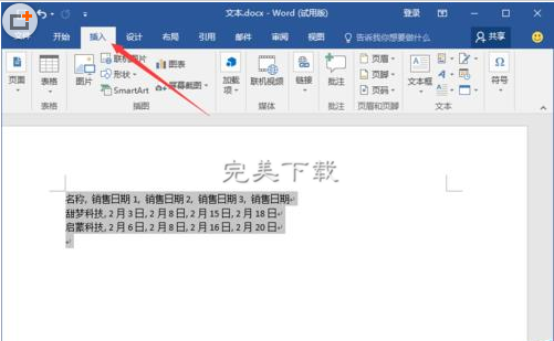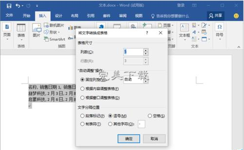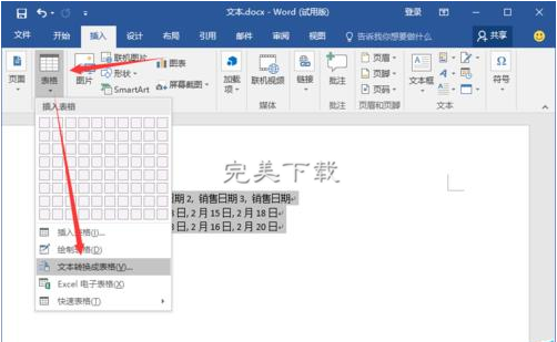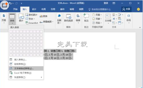 Word2016中如何将文本快速转为表格?