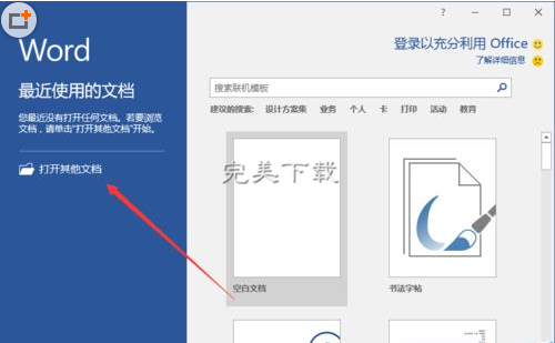 1、鼠标左键双击计算机桌面Word2016程序图标,将其打开运行。并点击“打开其他文档”选项。打开需要编辑的Word文档。如图所示;