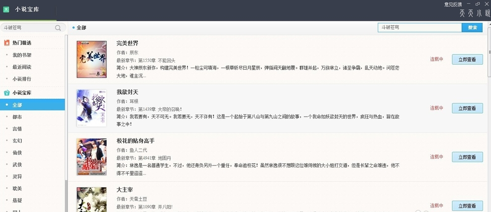 2、选择要缓存的小说,点击右侧的立即查看,再点击立即阅读,进去后就一直按着键盘上的→不动(一定要在联网状态下进行)一直到小说最后一章再松手,切记。然后你就可以把网断了再看了。(此方法只对有耐心的人有用)