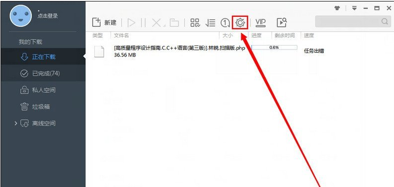 1、打开迅雷主界面,点击正上方的设置按钮。