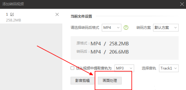 2、添加好后会出现下图界面,在这里打开“画面处理”功能;