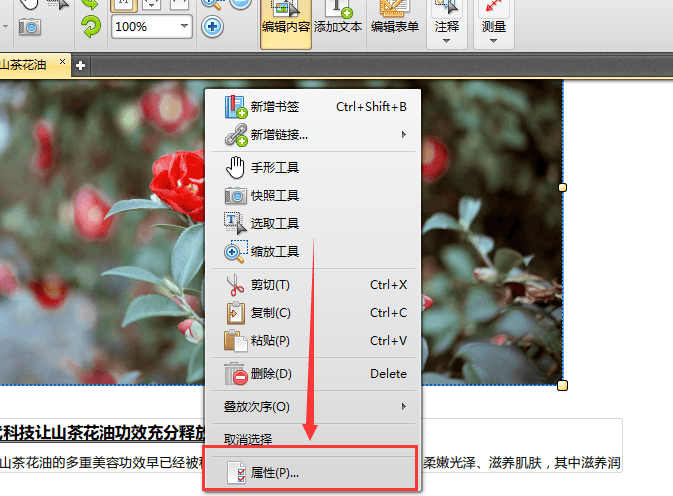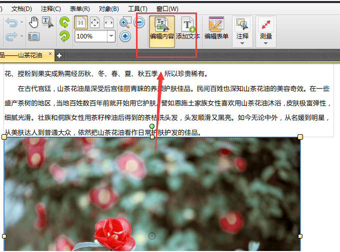 2、如果想要修改PDF文件里图片的透明度,那么首先需要点击编辑内容选项,这样即可选择需要进行修改的图片,进行图片透明度修改操作。