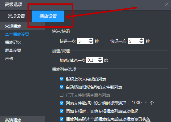 3、进入“高级选项”,然后点击“播放设置”,