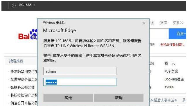 2、打开电脑浏览器或者手机浏览器,在地址栏输入路由器IP。我这里的路由器IP是自己修改过的,请根据自己的情况输入;如果修改过,就输入修改后的IP,然后输入用户名和密码。如下图: