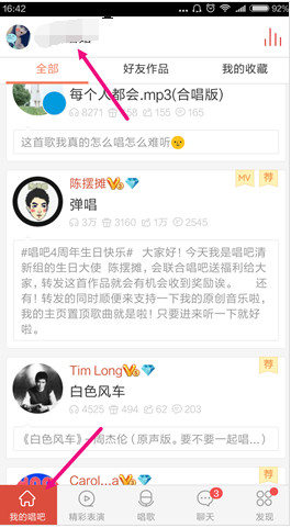 1、打开唱吧,点击左下角的【我的唱吧】,接着点击上方的唱吧昵称