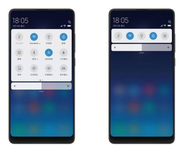 除了音量键以外,亮度调节面板也有了新的改变。以前调节亮度时,大家采用拖拽“小圆点”进行调节,MIUI10把亮度调节栏进行了放大,采用了宽条型设计,并且在你需要调节亮度时,手指按上去,在任意位置左右滑动就可以实现调节明暗的效果,操作更便捷了。