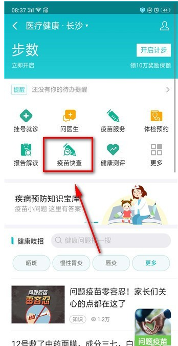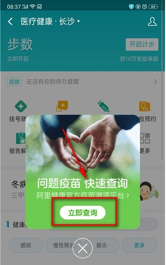 进入界面会有一个问题疫苗快速查询的海报,点击立即查询,
