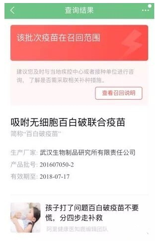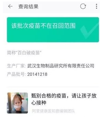 造假疫苗事件近日爆发,引起广大家长担忧。对此,阿里巴巴立即开通了一个快速查疫苗厂家批次的入口,家长可以及时查询疫苗是否在召回范围内!