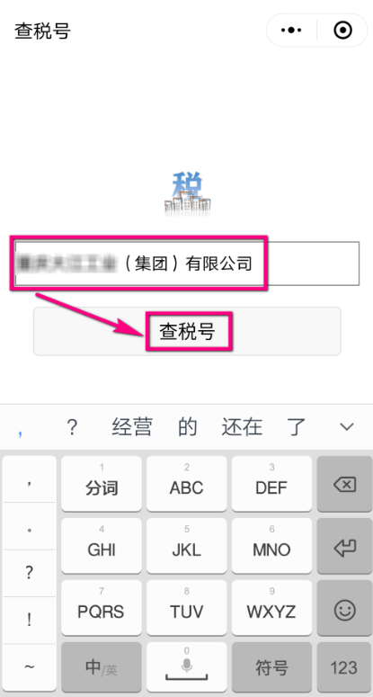 进入到查询页面,在输入框中输入完整的企业名称,点击【查税号】按钮,进行查询。