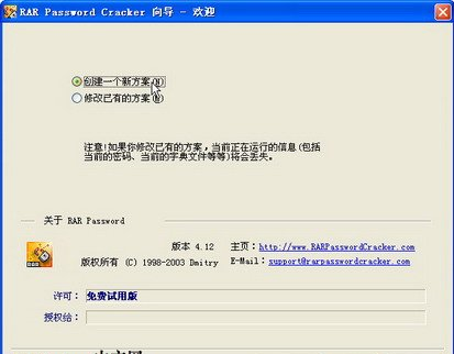 1.安装RAR Password Cracker,然后在开始菜单中依次单击“所有程序”→RAR Password Cracker→RAR Password Cracker Wizard菜单命令,打开“RAR Password Cracker向导”。选中“创建一个新的方案”单选钮,并单击“下一步”按钮。