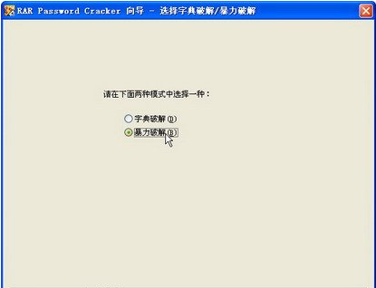 在打开的“信息”对话框中直接单击“确定”按钮,打开“选择字典破解/暴力破解”向导页。选中“暴力破解”单选钮,并单击“下一步”按钮。