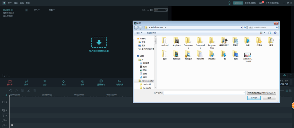 打开万兴神剪手,登录账号,进入界面,点击“导入媒体文件到这里”,