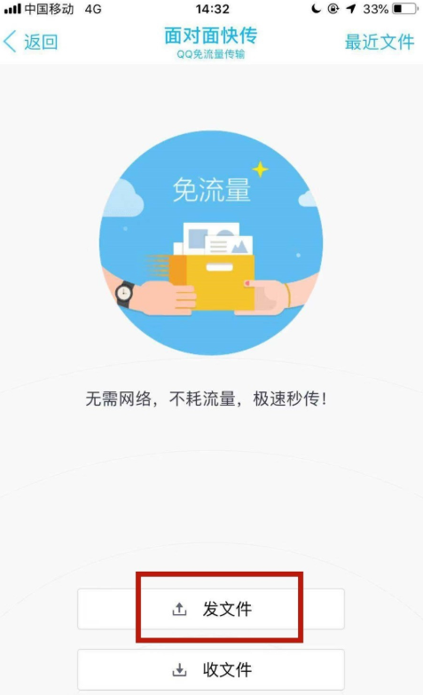 然后点击“发文件”,如图,