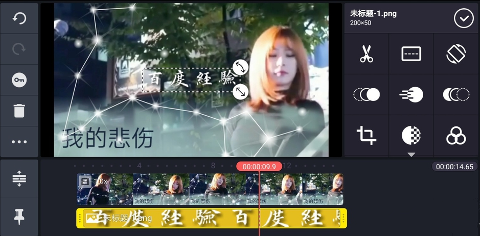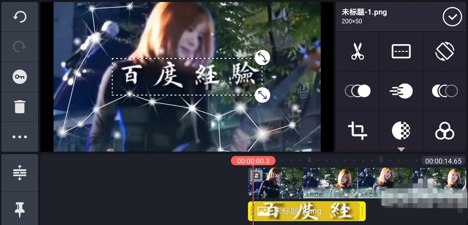 调整文字logo的大小,拖拽使其和视频保持一样的长度,