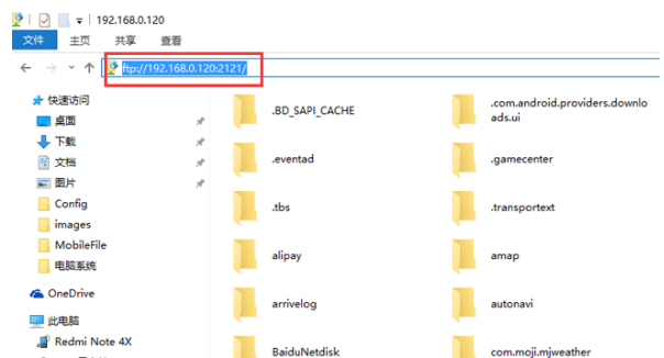 如图,在【我的电脑】地址栏中输入手机中显示的信息,