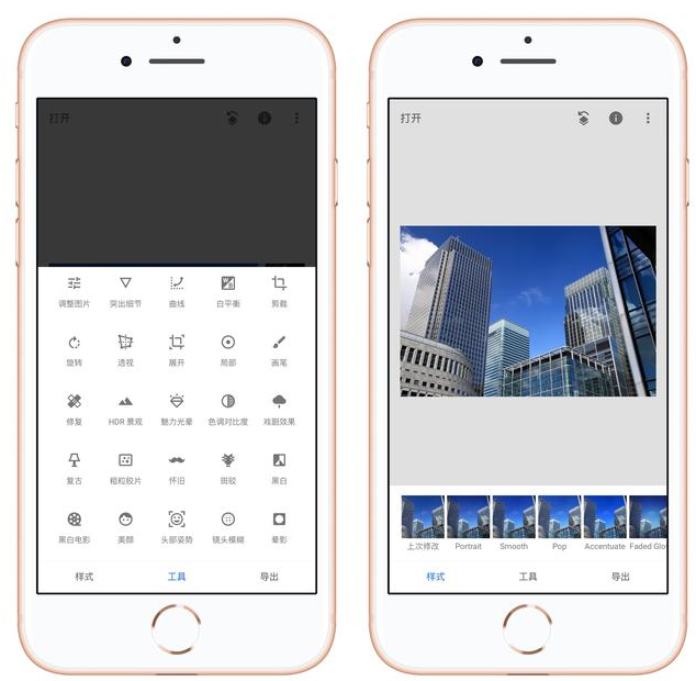 除了这个功能之外,snapseed的其他功能也非常适合进行后期手机修图,你还可以试试滤镜、曲线、修复、美颜、画笔等,基本能满足手机党。