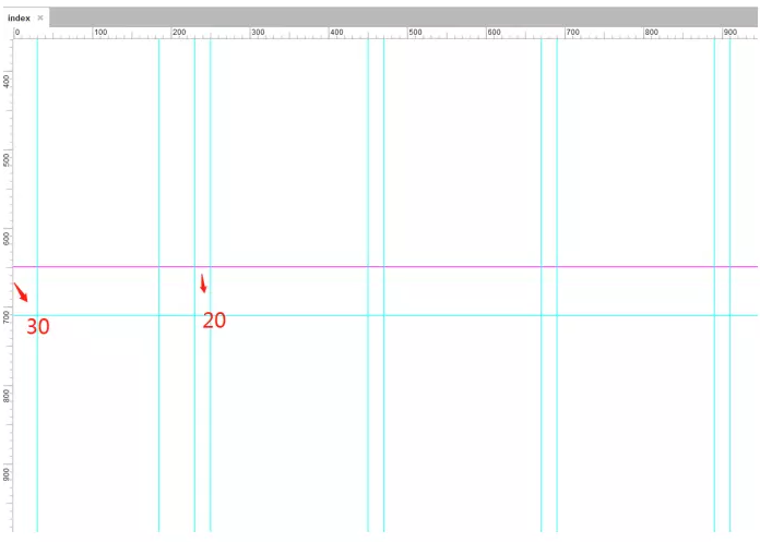 如果需要创建全局辅助线,在相应的标尺上按住ctrl键,就能创建出全局辅助线了: