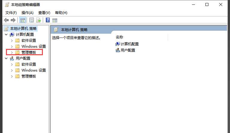 打开本地组策略编辑器,在右侧点击【管理模板】,