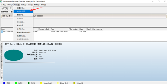 然后,在主界面的菜单栏中点击“向导”,选择“格式化分区”的选项,从而进入分区魔术师硬盘格式化工具。