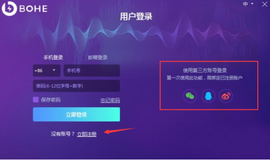 2、如果是新用户的话,那要点击“立即注册”进行注册,注册后登录。或者也可以绑定到第三方平台,例如微信、QQ、微博直接登录。
