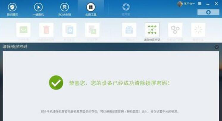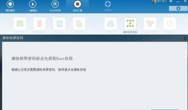 之后,360刷机精灵就会自动弹出“清除锁屏密码”的提示窗口,此时,用户直接点击界面右下方的“清除”按钮即可。