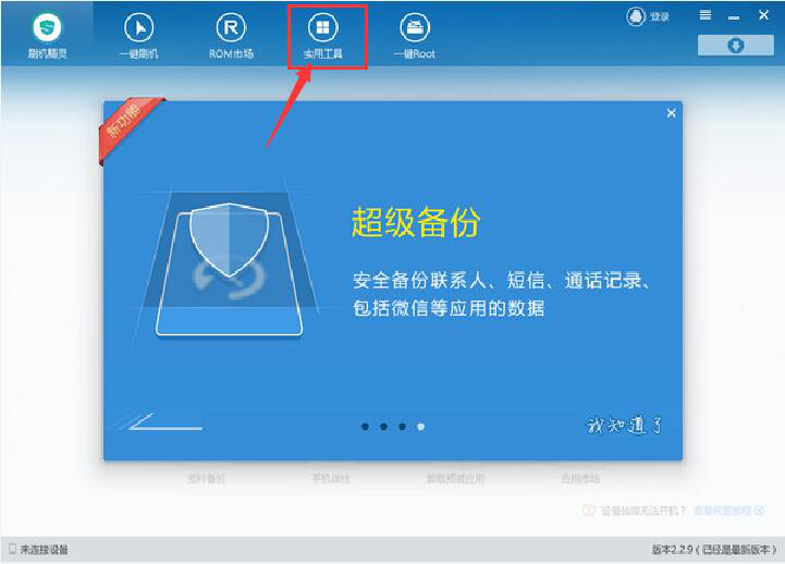 然后,在360刷机精灵的界面中,点击“实用工具”,从而进入360刷机精灵解除密码的下一步操作。