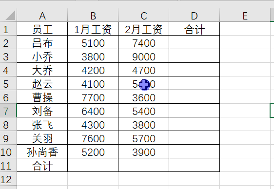 举例1、行列快速求和