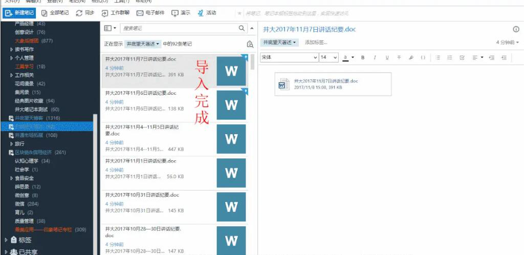 6、最后,当导入完成后,就可以在印象笔记中看到所导入的批量文件了。