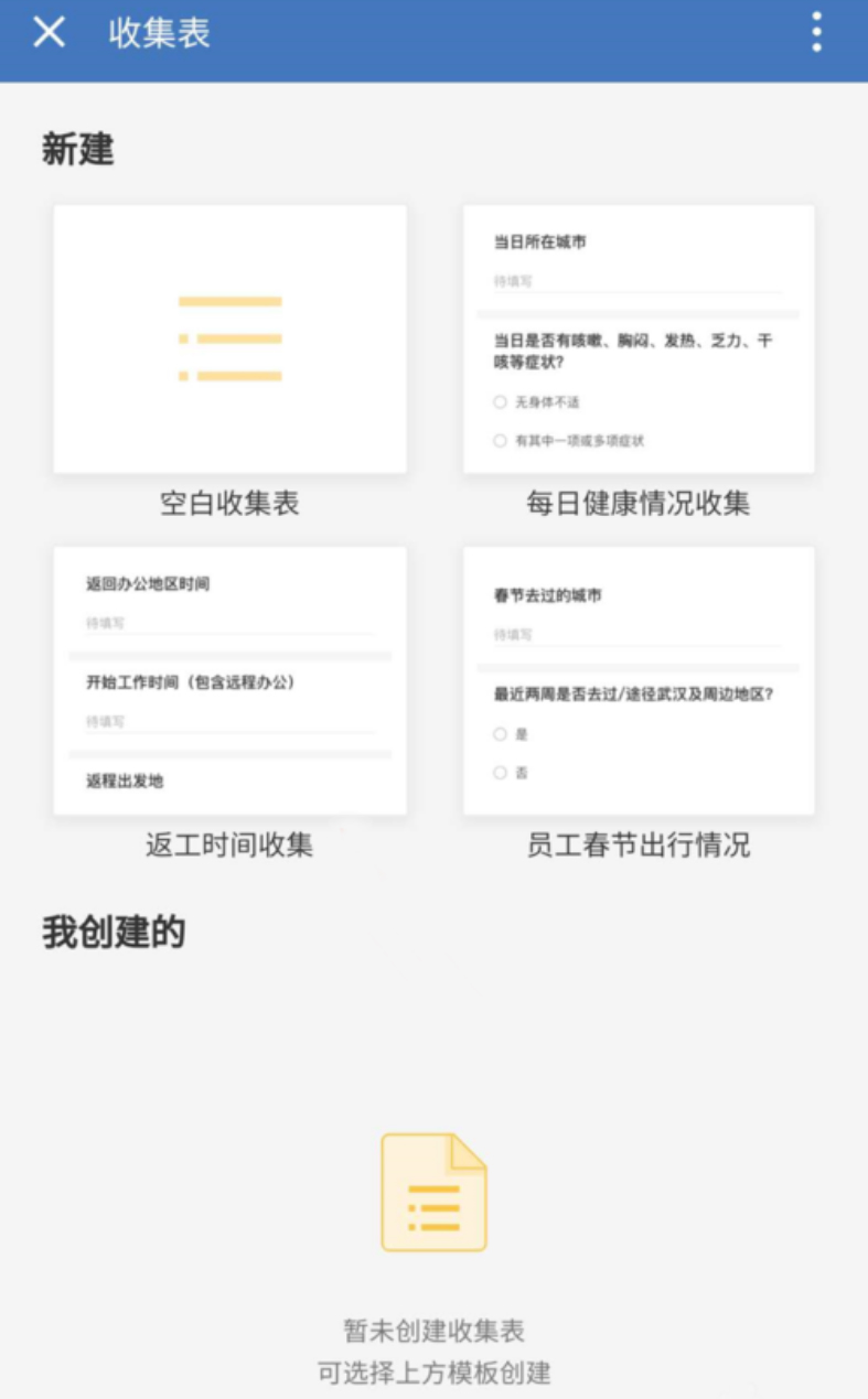 5、在企业微信电脑版微文档收集表操作界面中,选择适合用户使用的模板来创建。