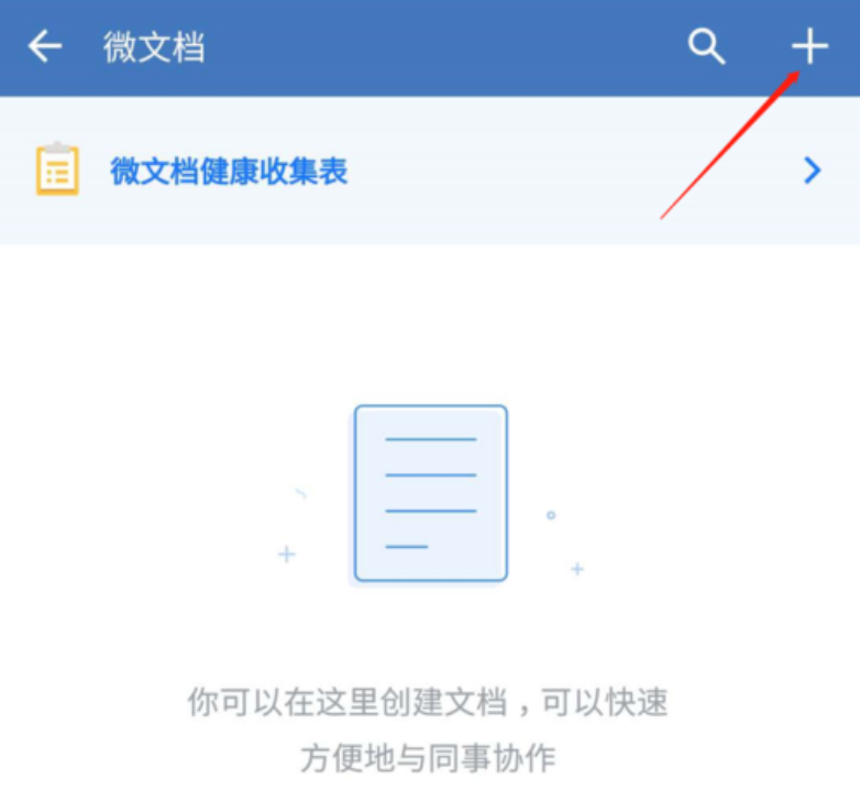 3、然后,在微文档向导页中,点击右上角的“+”从而新建企业微信电脑版微文档。