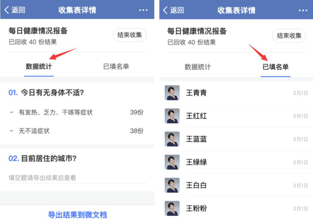 7、最后,用户还可以在该收集表中查看收集回来的信息。