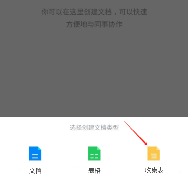 4、接着,在新建的文档类型中,点击“收集表”,