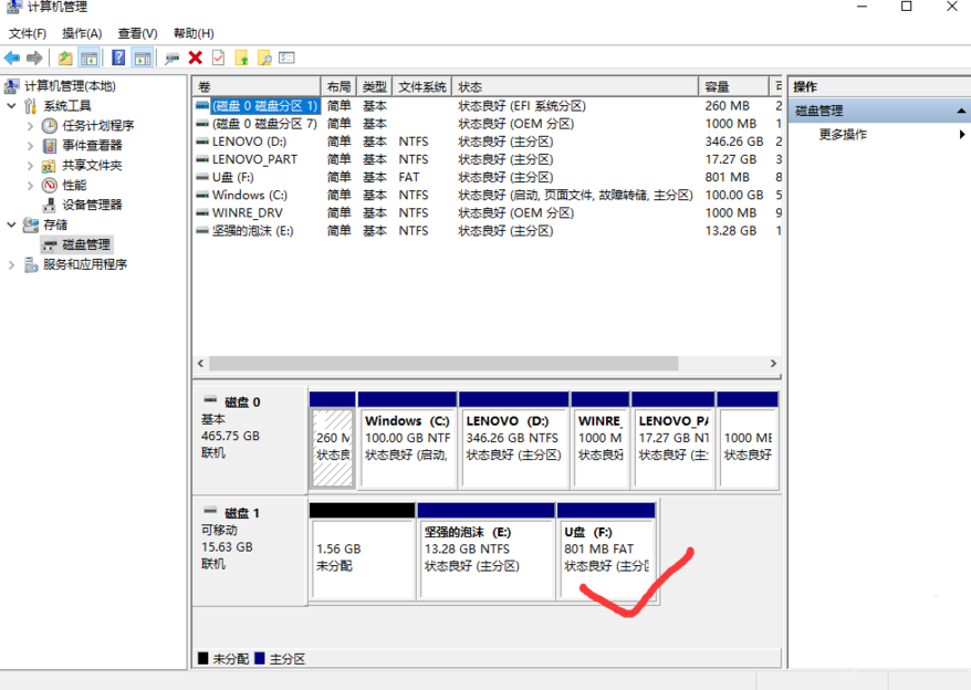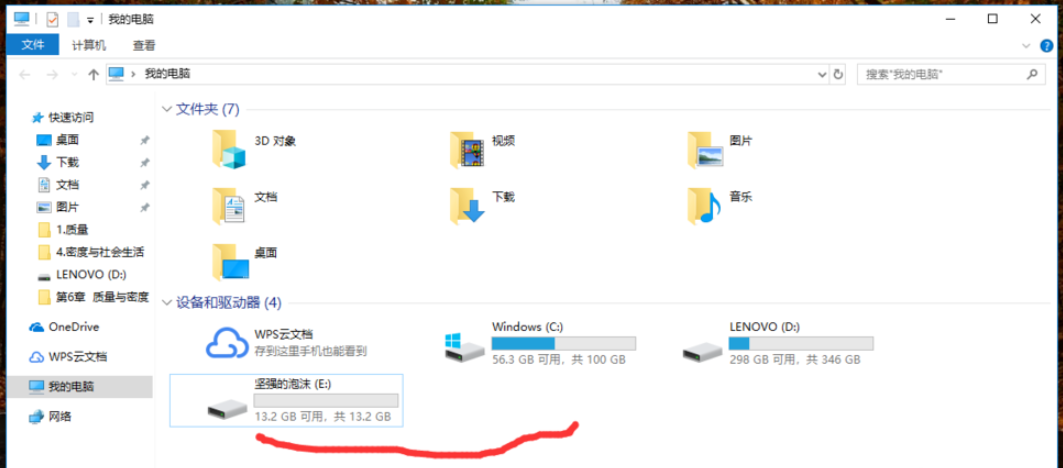 再次回到我的电脑主界面,现在只能看到一个U盘盘符,OK,问题解决了。