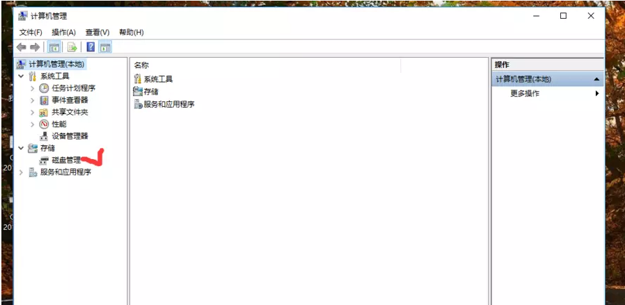 鼠标右击【我的电脑】,弹出菜单,点击【管理】,进入计算机管理界面,如图,在左侧点击【磁盘管理】,