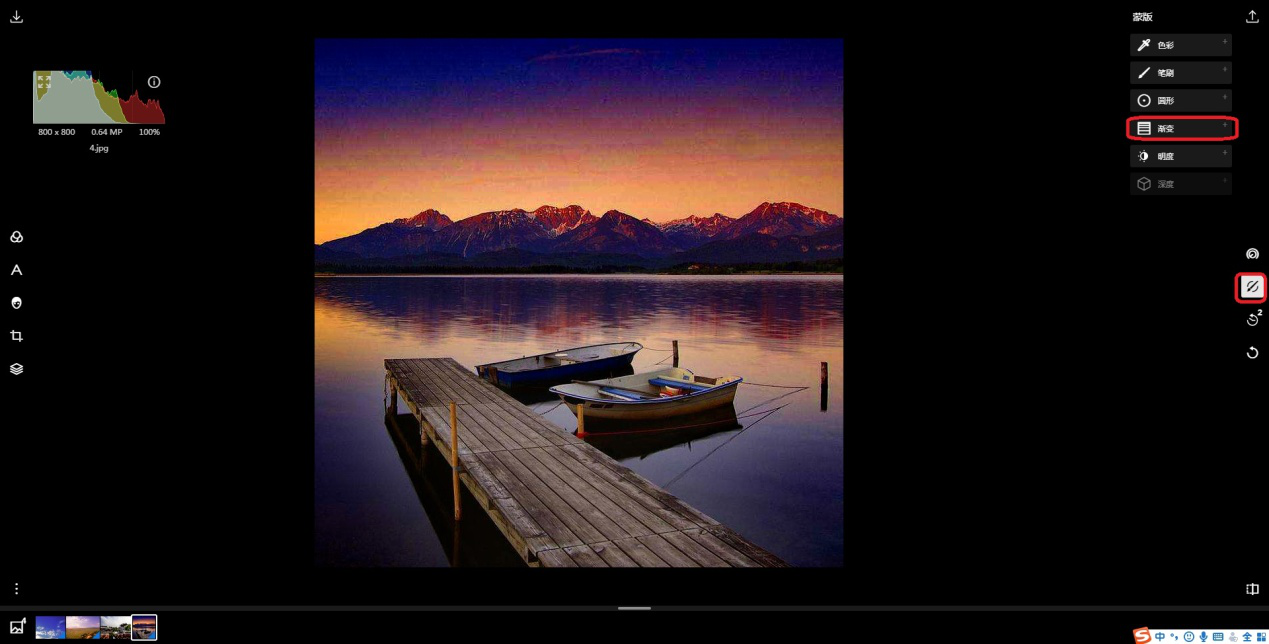 3、点击右侧【局部调整】图标,然后点击【渐变】。