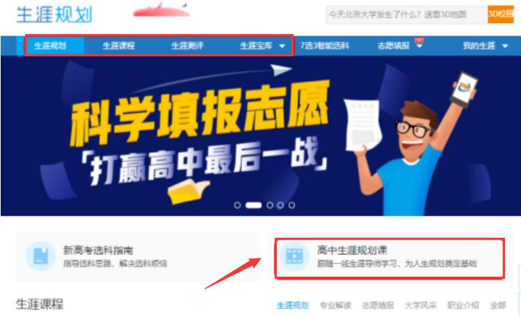 3、在升学e网通生涯规划的页面中,可以看到它有很多课程。如果是高中生想做生涯规划,就点击“高中生生涯规划课”。