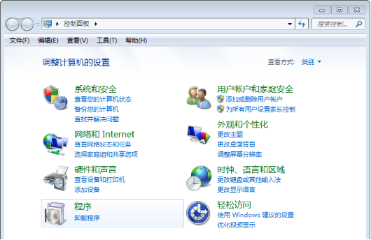 2、弹出控制面板窗口,在其中找到并点击【卸载程序】。