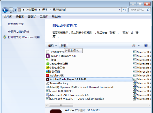 以上就是关于如何快速卸载Adobe Flash Player方法的介绍,希望大家能够喜欢。当然,大家也可以试试其他第三方软件卸载,比如360安全卫士等软件。