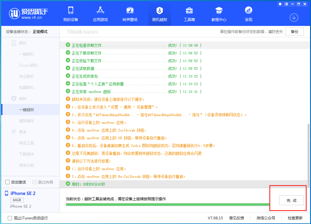 以上就是爱思助手关于iOS 11.0至13.5的越狱教程的介绍。需要提醒大家的是,越狱操作并不是百分之百,所以在越狱前最好将系统做下备份。
