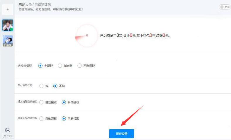 4、最后,再次确认46助手自动抢红包的设置无误,点击“保存设置”按钮。