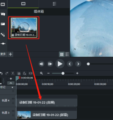 5.录制完成后,可以看到时间轴上有一条音轨,这就说明,刚才的录音已经成功,只要把这段录音插入到视频对应的时间线上即可
