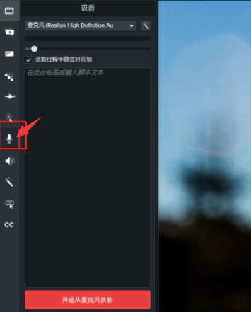 3.从左侧工具栏中选择小话筒,这个其实就是重新录音的功能,然后点击“开始从麦克风录制”