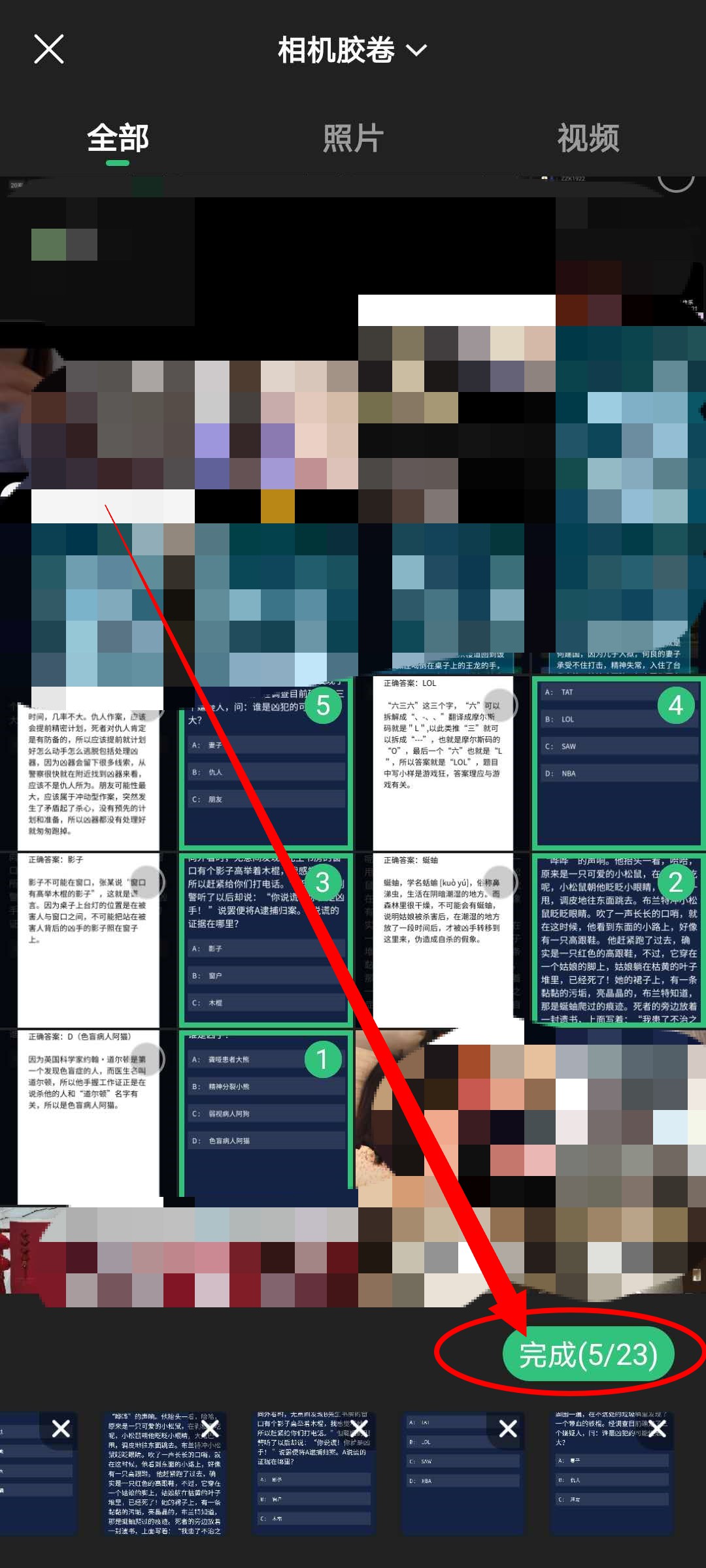 2、点击后跳转到选择照片和视频界面,选择视频或者相片点击完成即可进行下一步。