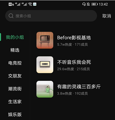 4、跳转到小组选择界面,点击选择想要发布到的小组即可。