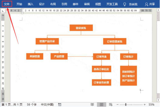 10.最后,word流程图制作完成,点击“文件”菜单的保存即可将该流程图保存起来。